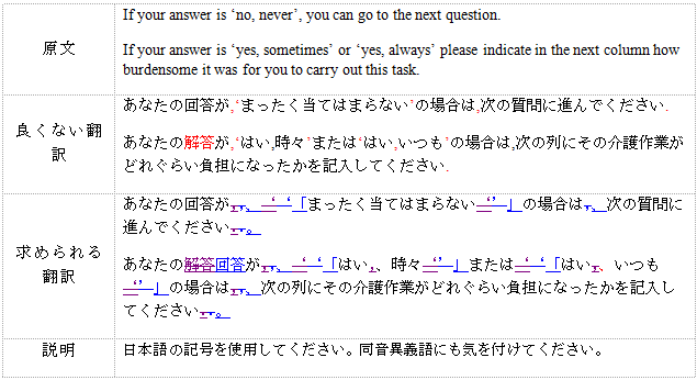 対訳リストで指示された訳語が、不適切な場合はリマークで指摘する
