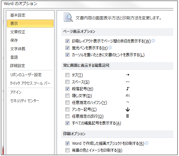 Macについては、「環境設定」の「表示」で編集記号の表示と非表示を選択す ることができます。
