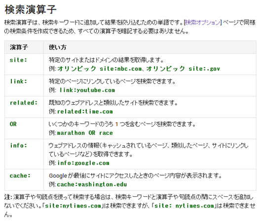 参照:https://support.google.com/websearch/answer/2466433?p=adv_operators&hl=ja&rd=1。